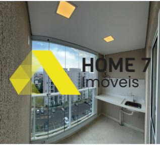 Varanda ampla com vista frontal do condomínio - nascer do sol.
