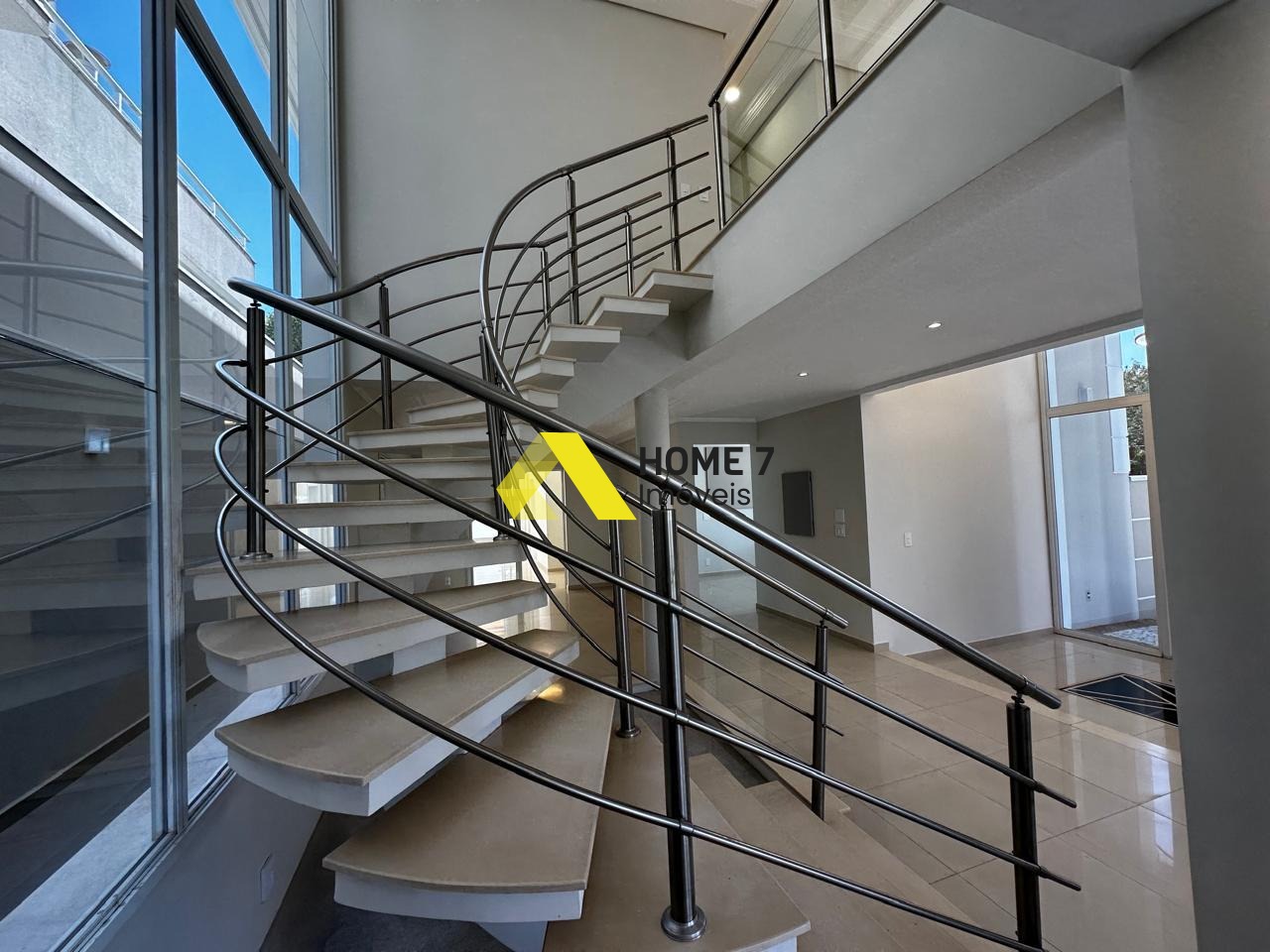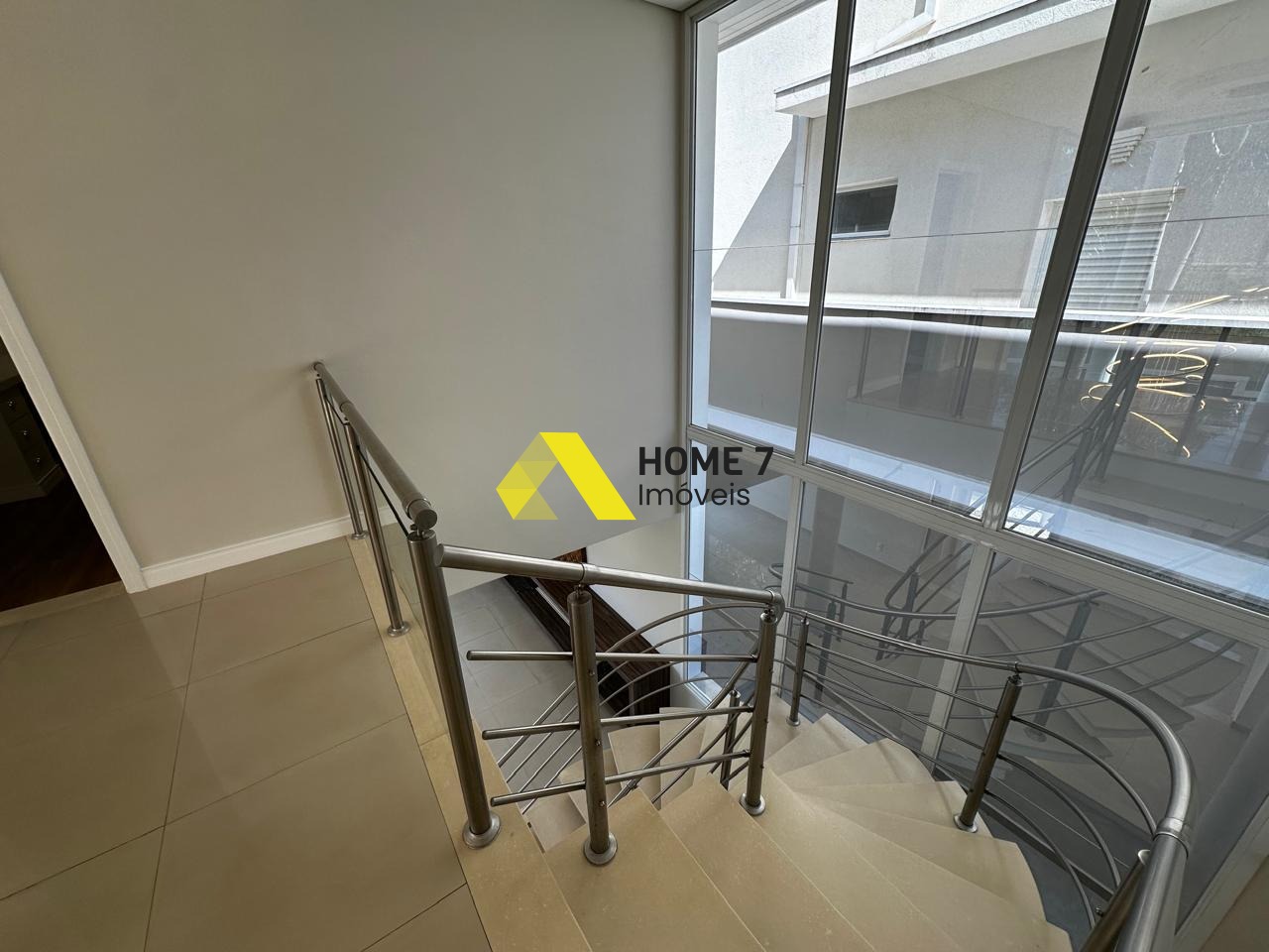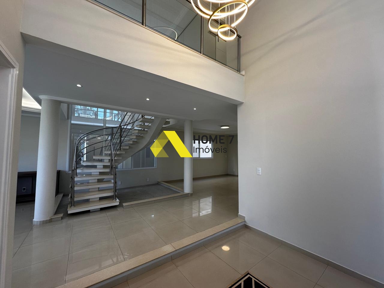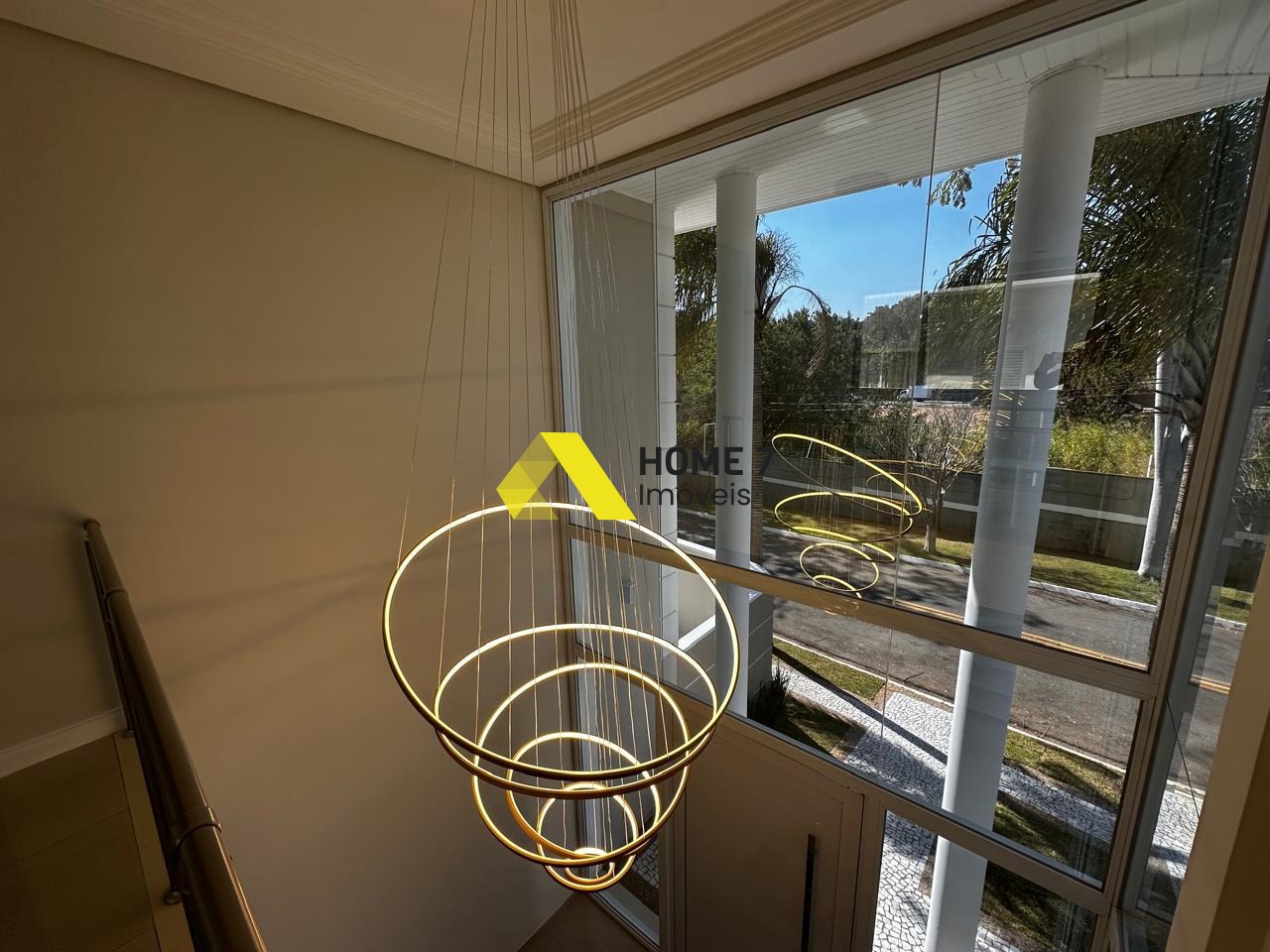 Ao subirmos para o Piso Superior, possui uma vista do mezanino da casa para área térrea da entrada e do belo vidro transparente que se sobressai em beleza que dá o destaque do imóvel.