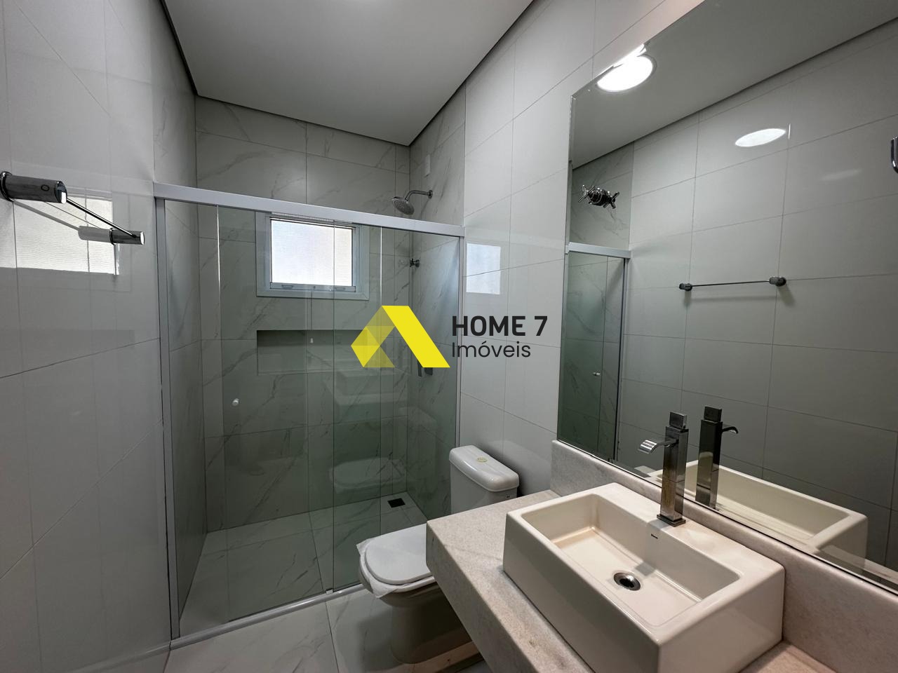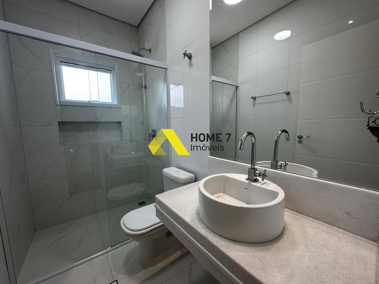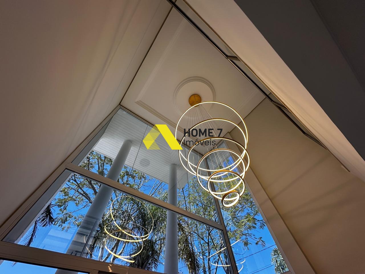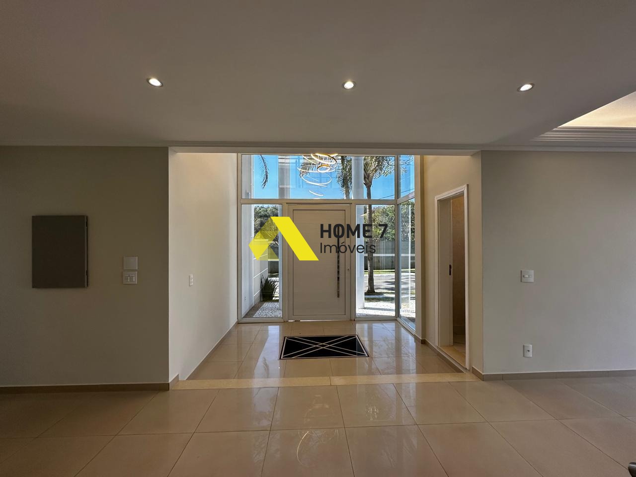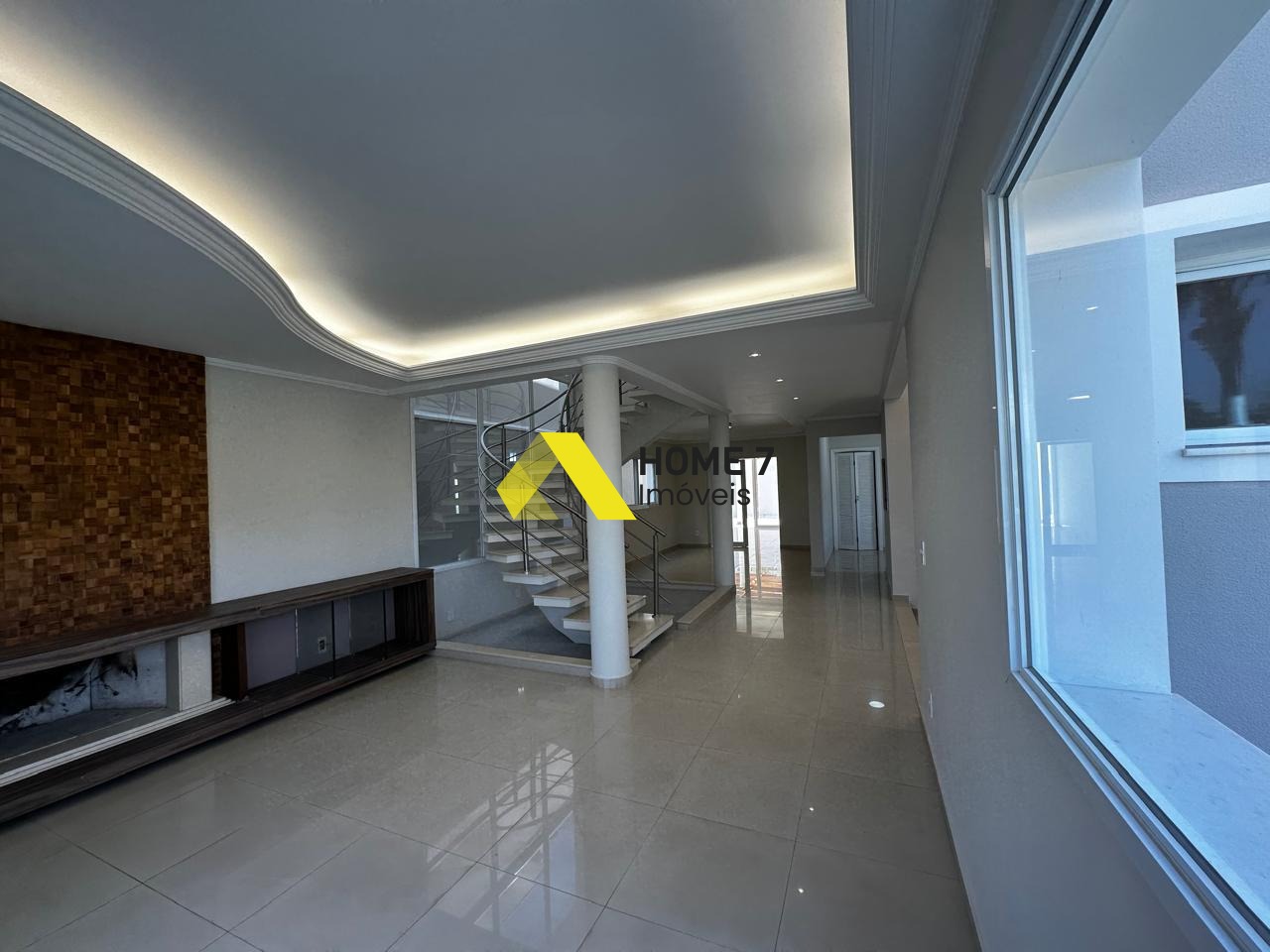 A Casa se destaca ao entrar pelo pé direito alto com lindo detalhes de Iluminação em Leds e da vista da área externa com detalhes em vidro transparente.