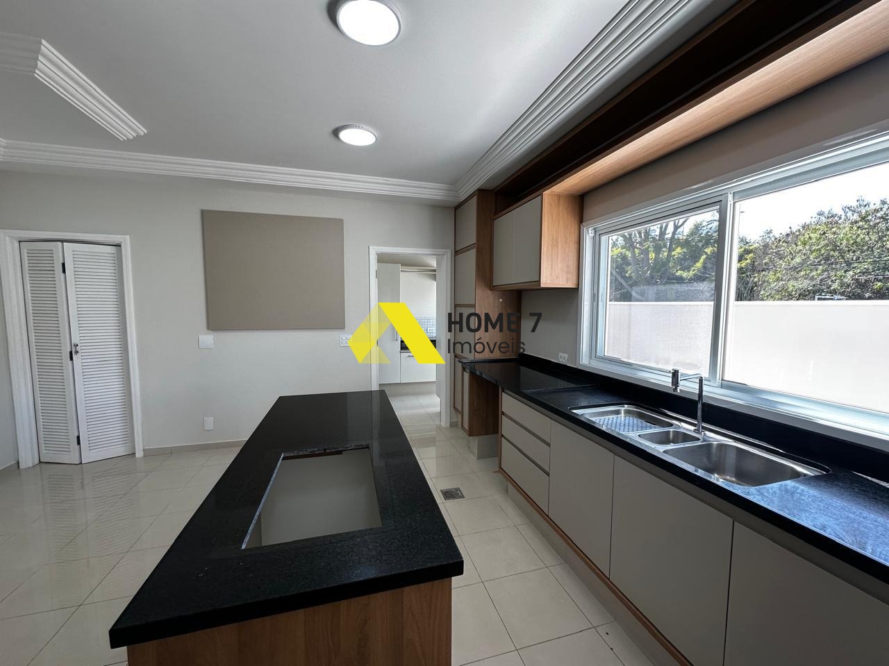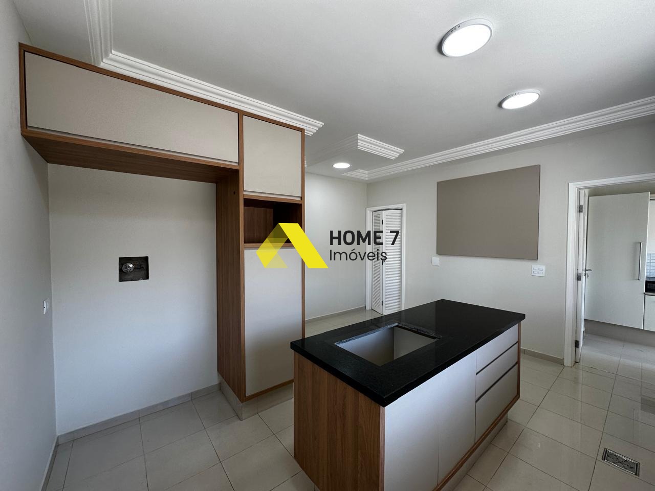 A Cozinha projetado com armários planejados com ilha ao centro , despensa e muita luminosidade pois concede também o espaço para quintal privativo para varal em roupas.