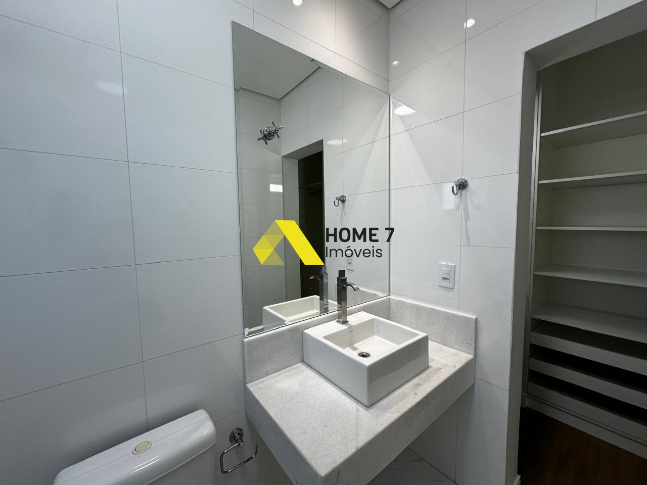 Já na área de serviço, possui um espaço quarto com banheiro e armário planejado para fins domésticos.
