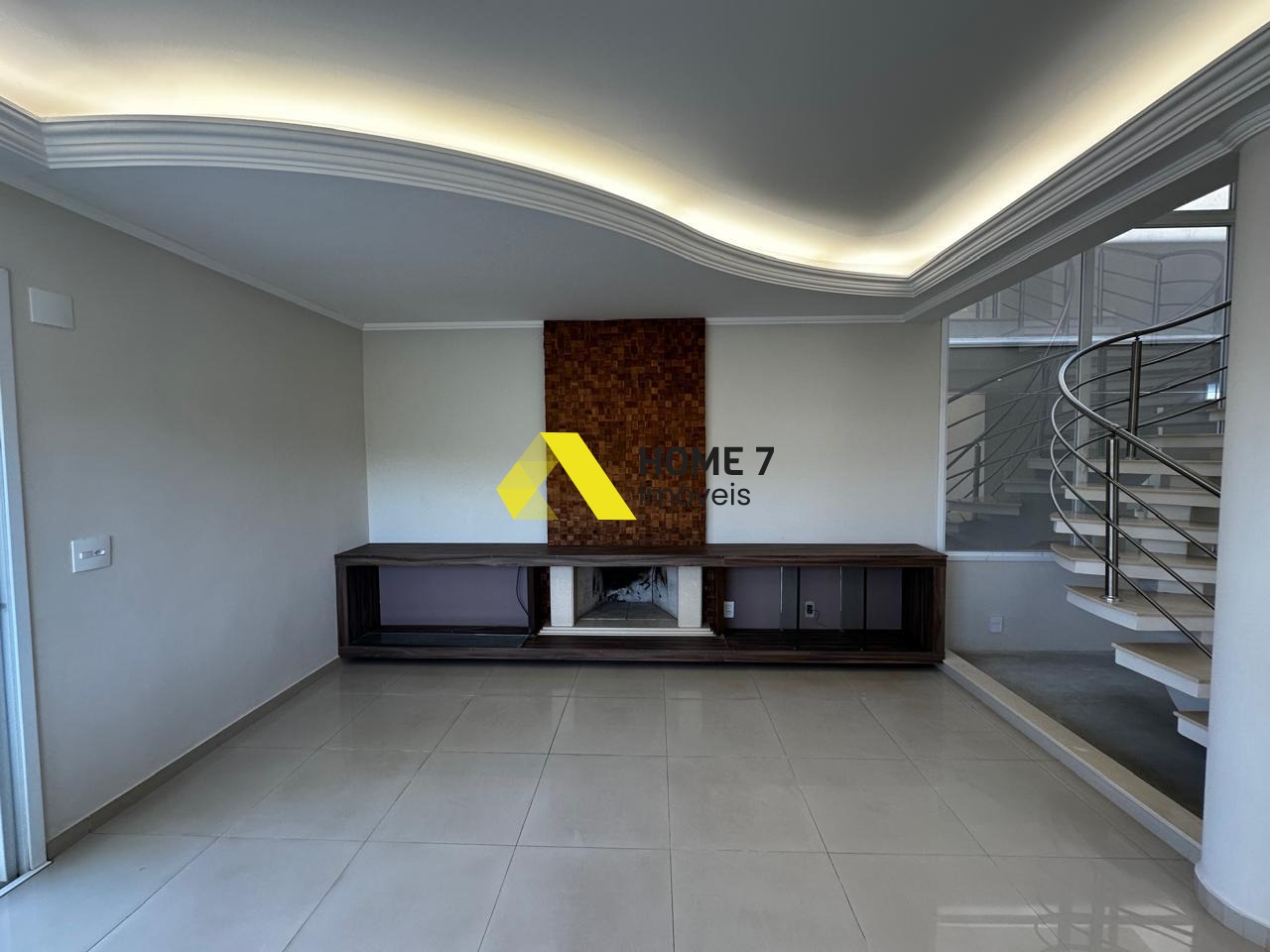 Casa possui , lavabo e salas que projetam em ambientes que agrega a Lareira e painel , escada com corrimão inox , sala de jantar e sala TV com entrada exclusiva pela Garagem.