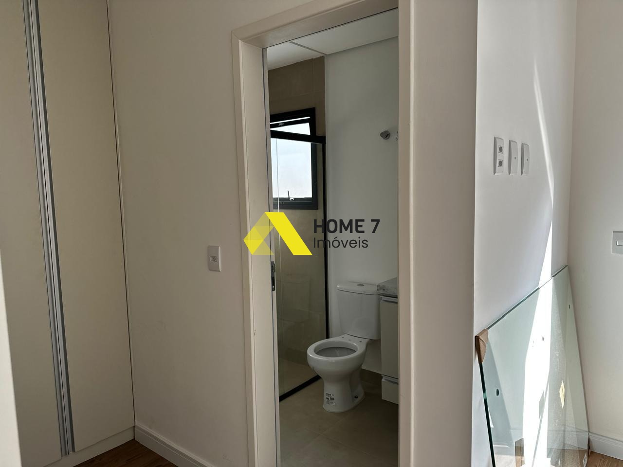 Armários planejados em dois quartos, sendo banheiros planejados com box incolor