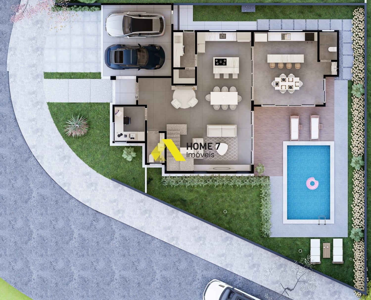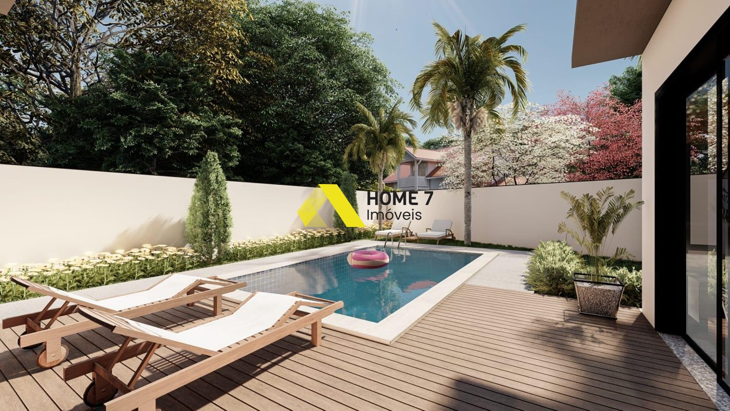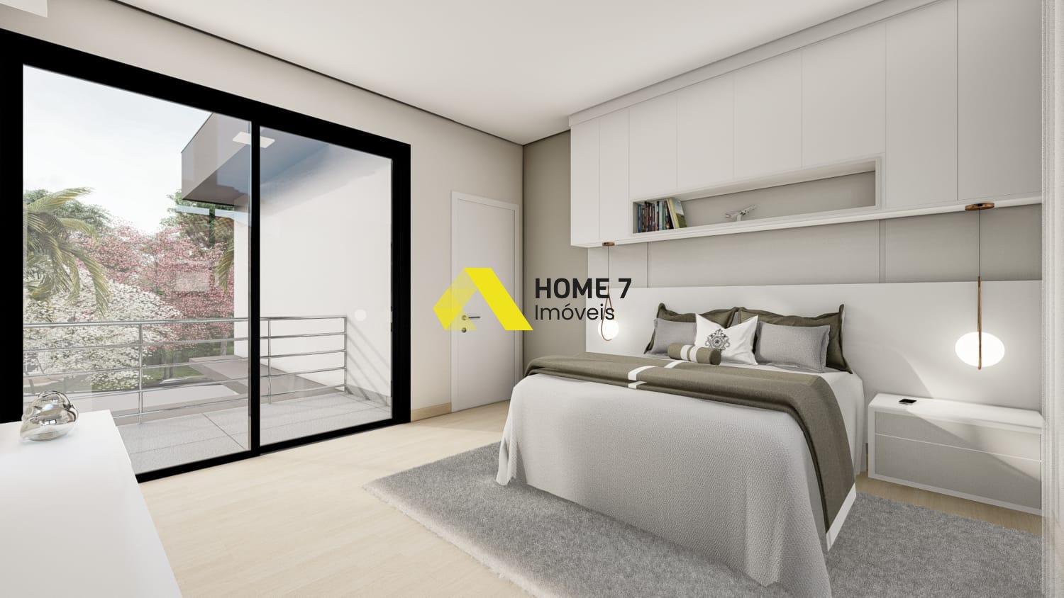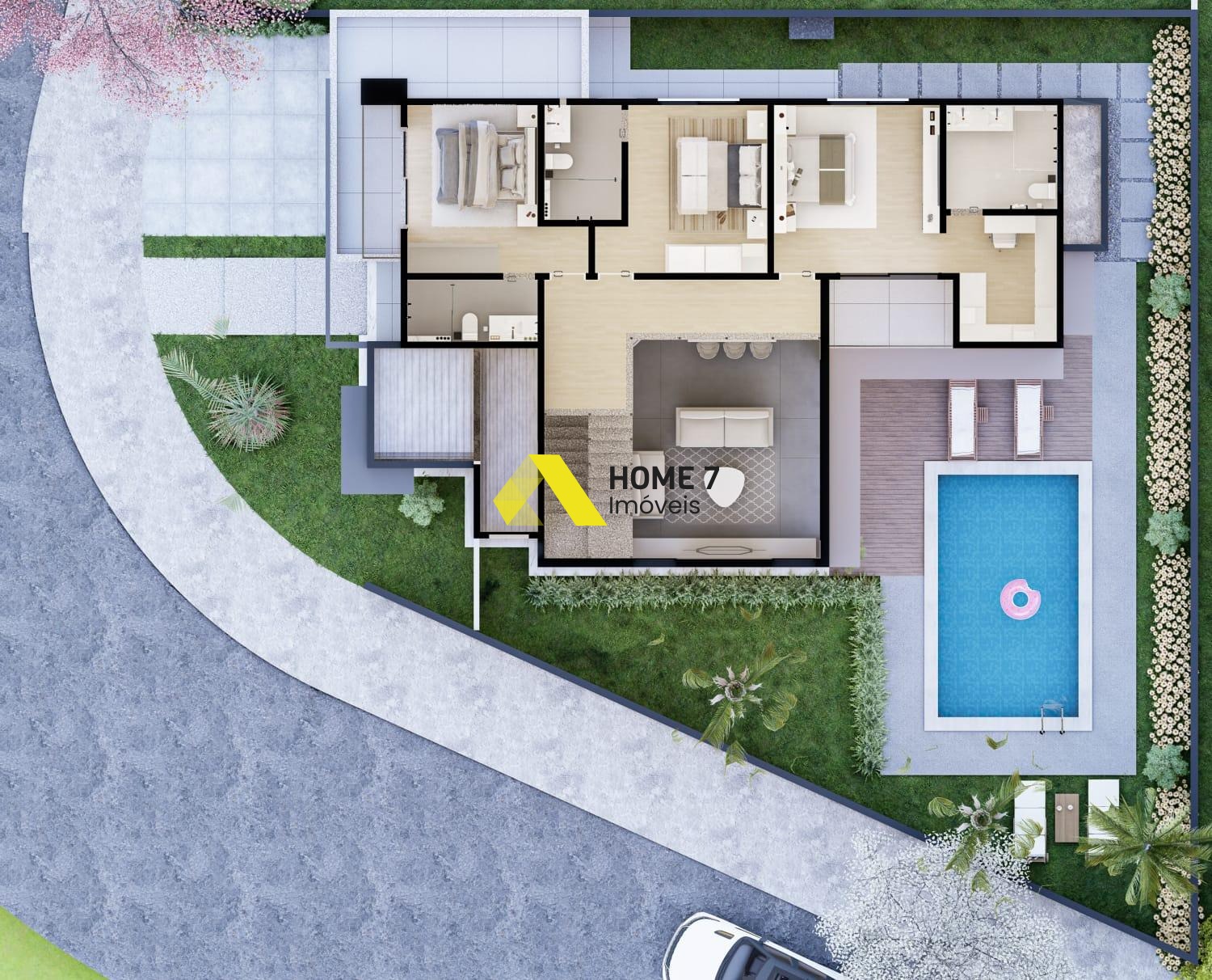 Suíte Master com varanda e com vista para a piscina, suíte 01 e suíte 02 com varanda e com vista frontal.